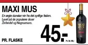 Prisen på Maxi mus kan findes øverst på siden sammen med datoerne, hvor tilbuddet er tilgængeligt. Du kan også kigge på prisen i den nuværende ABC Lavpris tilbudsavis eller på ABC Lavpriss hjemmeside. Kampagnetilbud sikrer, at du køber ABC Lavpriss varer til den laveste pris.