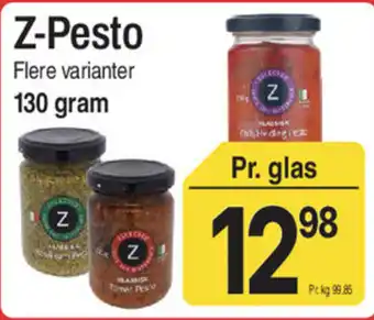 Dette tilbud er tilgængeligt i forskellige butikker, gennemse alle produkter for at finde det billigste Z-Pesto. Hvis du gerne vil vide om denne vare er billigere i en anden butik, tjek kategorien 'Dagligvarer'. Du vil måske også finde disse tilbud interessant: Z Cremet pesto, Z-Pasta & Sicilienskinspireret pesto.