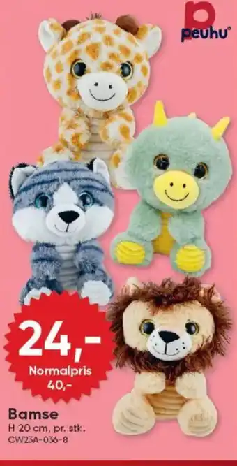 Dette tilbud er tilgængeligt i forskellige butikker, gennemse alle produkter for at finde det billigste Bamse. Hvis du gerne vil vide om denne vare er billigere i en anden butik, tjek kategorien 'Grænsehandel'. Du vil måske også finde disse tilbud interessant: Bamse, DKK 79, Bamse med tæppe & Bamse, DKK 99.