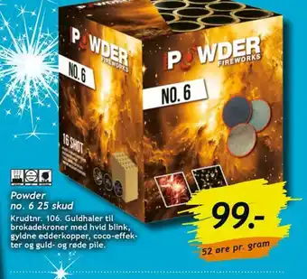 Nu på tilbud hos Bilka: Powder no. 6 25 skud ✅ Gælder fra 13-12 til 31-12.