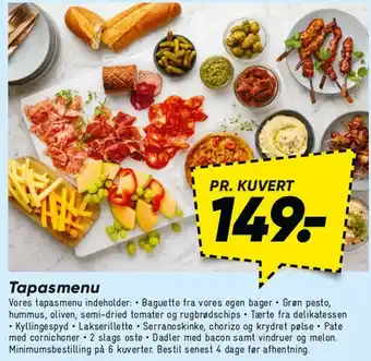 Dette tilbud er tilgængeligt i forskellige butikker, gennemse alle produkter for at finde det billigste Tapasmenu. Hvis du gerne vil vide om denne vare er billigere i en anden butik, tjek kategorien 'Dagligvarer'. Du vil måske også finde disse tilbud interessant: Tapasmenu, tilbud 2 & tilbud 3.