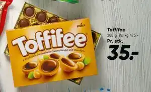 Dette tilbud er tilgængeligt i forskellige butikker, gennemse alle produkter for at finde det billigste Toffifee. Hvis du gerne vil vide om denne vare er billigere i en anden butik, tjek kategorien 'Dagligvarer'. Du vil måske også finde disse tilbud interessant: Toffifee, Toffifee & Toffifee.