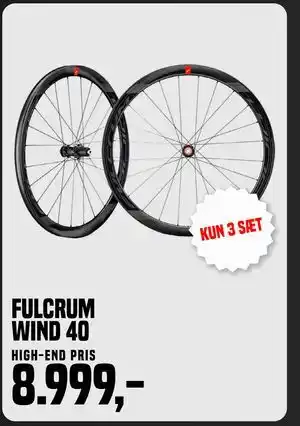 Prisen på Fulcrum Wind 40 kan findes øverst på siden sammen med datoerne, hvor tilbuddet er tilgængeligt. Du kan også kigge på prisen i den nuværende Børkop Cykler tilbudsavis eller på Børkop Cyklers hjemmeside. Kampagnetilbud sikrer, at du køber Børkop Cyklers varer til den laveste pris.