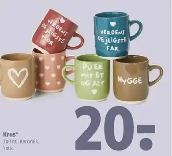 Dette tilbud er tilgængeligt i forskellige butikker, gennemse alle produkter for at finde det billigste Krus. Hvis du gerne vil vide om denne vare er billigere i en anden butik, tjek kategorien 'Dagligvarer'. Du vil måske også finde disse tilbud interessant: KRUS CITRUS, Krus (MOR / FAR) & FLORA KRUS.