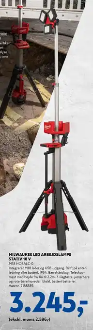 MILWAUKEE LED ARBEJDSLAMPE STATIV 18 V, DKK 3245-tilbud hos Davidsen