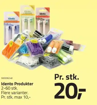 Prisen på Idento Produkter kan findes øverst på siden sammen med datoerne, hvor tilbuddet er tilgængeligt. Du kan også kigge på prisen i den nuværende Fleggaard tilbudsavis eller på Fleggaards hjemmeside. Kampagnetilbud sikrer, at du køber Fleggaards varer til den laveste pris.