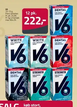 Fleggaard har et stort udvalg af varer udover V6. Hold øje med den ugentlige Fleggaard avis for at finde de bedste tilbud og kampagner. Udover V6, kan du også finde følgende tilbud: V6 Tyggegummi, DKK 24.24, v & V8 Cyclone.