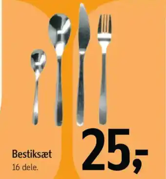Dette tilbud er tilgængeligt i forskellige butikker, gennemse alle produkter for at finde det billigste Bestiksæt. Hvis du gerne vil vide om denne vare er billigere i en anden butik, tjek kategorien 'Dagligvarer'. Du vil måske også finde disse tilbud interessant: Bestiksæt, Bestiksæt / Bestiksæske & Bestiksæt 24 dele - 6 kuverter.