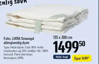 Føtex har et stort udvalg af varer udover F.eks. LIXRA Smaragd. Hold øje med den ugentlige Føtex tilbudsavis for at finde de bedste tilbud og kampagner. Udover F.eks. LIXRA Smaragd, kan du også finde følgende tilbud: F.eks. LIXRA Smaragd allergivenlig dyne, LIXRA SMARAGD DUNDYNE & LIXRA Smaragd allergivenlig dyne.