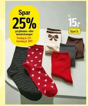 Spar 25% på glimmer- eller tennisstrømper tilbud fra Føtex