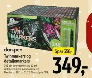 Nu på tilbud hos Føtex: Twinmarkers og detaljemarkers, DKK 349 ✅ Gælder fra 28-11 til 31-12.
