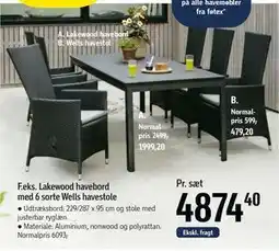 Lakewood havebord med 6 sorte Wells havestole