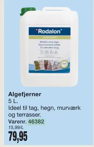 Dette tilbud er tilgængeligt i forskellige butikker, gennemse alle produkter for at finde det billigste Algefjerner. Hvis du gerne vil vide om denne vare er billigere i en anden butik, tjek kategorien 'Byggemarkeder'. Du vil måske også finde disse tilbud interessant: Algefjerner, Algefjerner & Algefjerner (Alge fjerner).