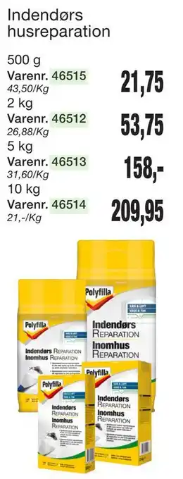 Prisen på Indendørs husreparation kan findes øverst på siden sammen med datoerne, hvor tilbuddet er tilgængeligt. Du kan også kigge på prisen i den nuværende Harald Nyborg tilbudsavis eller på Harald Nyborgs hjemmeside. Kampagnetilbud sikrer, at du køber Harald Nyborgs varer til den laveste pris.
