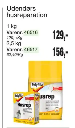 Prisen på Udendørs husreparation kan findes øverst på siden sammen med datoerne, hvor tilbuddet er tilgængeligt. Du kan også kigge på prisen i den nuværende Harald Nyborg tilbudsavis eller på Harald Nyborgs hjemmeside. Kampagnetilbud sikrer, at du køber Harald Nyborgs varer til den laveste pris.