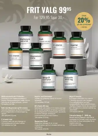 Prisen på Frit valg kan findes øverst på siden sammen med datoerne, hvor tilbuddet er tilgængeligt. Du kan også kigge på prisen i den nuværende Helsam tilbudsavis eller på Helsams hjemmeside. Kampagnetilbud sikrer, at du køber Helsams varer til den laveste pris.