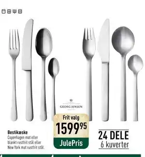 Prisen på Bestikæske, DKK 1599.95 kan findes øverst på siden sammen med datoerne, hvor tilbuddet er tilgængeligt. Du kan også kigge på prisen i den nuværende Imerco tilbudsavis eller på Imercos hjemmeside. Kampagnetilbud sikrer, at du køber Imercos varer til den laveste pris.