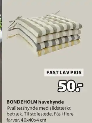 Prisen på BONDELHOLM havehynde kan findes øverst på siden sammen med datoerne, hvor tilbuddet er tilgængeligt. Du kan også kigge på prisen i den nuværende JYSK tilbudsavis eller på JYSKs hjemmeside. Kampagnetilbud sikrer, at du køber JYSKs varer til den laveste pris.