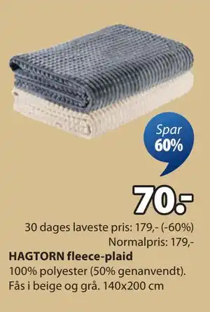 Nu på tilbud hos JYSK: HAGTORN fleece-plaid ✅ Gælder fra 13-02 til 26-02.