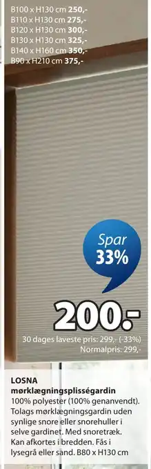 LOSNA mørklægningsplisségardin rabat hos JYSK