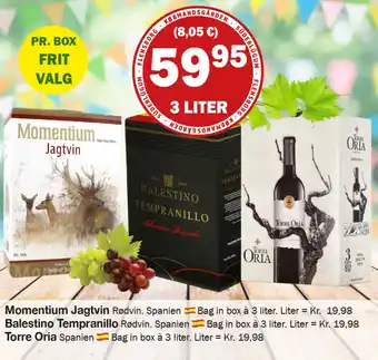 Momentium Jagtvin, Balestino Tempranillo ,Torre Oria tilbud og online kampagner direkte fra Købmandsgården