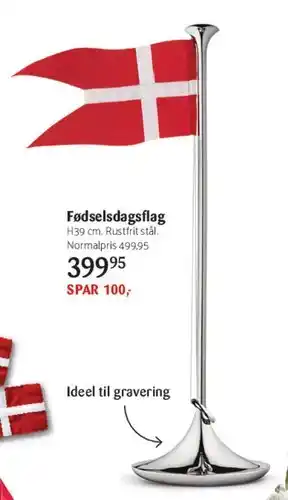 Prisen på Fødselsdagsflag kan findes øverst på siden sammen med datoerne, hvor tilbuddet er tilgængeligt. Du kan også kigge på prisen i den nuværende Kop & Kande tilbudsavis eller på Kop & Kandes hjemmeside. Kampagnetilbud sikrer, at du køber Kop & Kandes varer til den laveste pris.