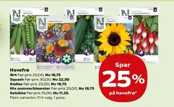Prisen på Havefrø kan findes øverst på siden sammen med datoerne, hvor tilbuddet er tilgængeligt. Du kan også kigge på prisen i den nuværende Kvickly tilbudsavis eller på Kvicklys hjemmeside. Kampagnetilbud sikrer, at du køber Kvicklys varer til den laveste pris.