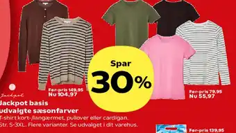 Kvickly har et stort udvalg af varer udover Jackpot basis. Hold øje med den ugentlige Kvickly tilbudsavis for at finde de bedste tilbud og kampagner. Udover Jackpot basis, kan du også finde følgende tilbud: Friends Basis daywear, Jackpot denim skjorte & Jackpot strik og bukser.