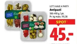Lidl har et stort udvalg af varer udover Antipasti. Hold øje med den ugentlige Lidl tilbudsavis for at finde de bedste tilbud og kampagner. Udover Antipasti, kan du også finde følgende tilbud: LET'S HAVE A PARTY Antipasti, tilbud 2 & tilbud 3.