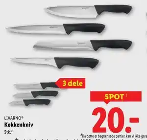 Dette tilbud er tilgængeligt i forskellige butikker, gennemse alle produkter for at finde det billigste Køkkenkniv. Hvis du gerne vil vide om denne vare er billigere i en anden butik, tjek kategorien 'Dagligvarer'. Du vil måske også finde disse tilbud interessant: Køkkenkniv (sæt), LIVARNO® Køkkenkniv & Fiskars universalsaks, køkkenkniv, brødkniv, skrælle-/urtekniv sæt eller knivsliber Frit valg.