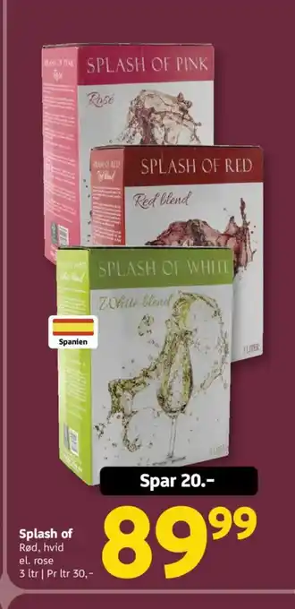 Prisen på Splash of kan findes øverst på siden sammen med datoerne, hvor tilbuddet er tilgængeligt. Du kan også kigge på prisen i den nuværende Løvbjerg tilbudsavis eller på Løvbjergs hjemmeside. Kampagnetilbud sikrer, at du køber Løvbjergs varer til den laveste pris.