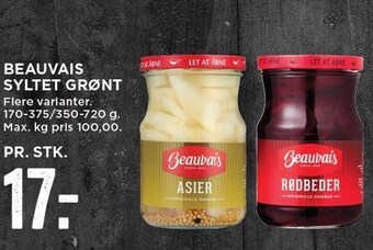 | BEAUVAIS SYLTET GRØNT | MENY | 16,00 kr. | 21 juli 2023 | 27 juli 2023 | |||