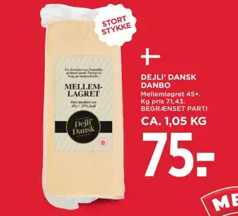 Prisen på Dejli' dansk danbo kan findes øverst på siden sammen med datoerne, hvor tilbuddet er tilgængeligt. Du kan også kigge på prisen i den nuværende MENY tilbudsavis eller på MENYs hjemmeside. Kampagnetilbud sikrer, at du køber MENYs varer til den laveste pris.