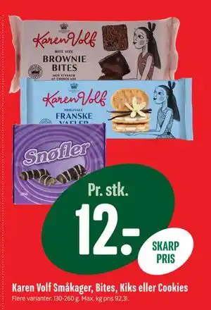 Nu på tilbud hos Min Købmand: Karen Volf Småkager, Bites, Kiks eller Cookies ✅ Gælder fra 2-01 til 8-01.
