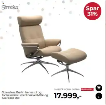 Nu på tilbud hos Møblér: Stressless Berlin lænestol og fodskammel med nakkestotte og Starbase stel ✅ Gælder fra 26-02 til 25-03.