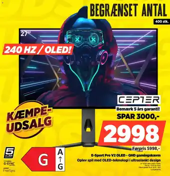Cepter e-sport pro v2 oled-qhd gamingskærm oplev spil med oled-teknologi i ultraslankt design rabat hos Power