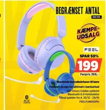 Prisen på FEEL Bluetooth-hovedtelefoner til børnFoldbart design for ultimativ bærbarhed kan findes øverst på siden sammen med datoerne, hvor tilbuddet er tilgængeligt. Du kan også kigge på prisen i den nuværende Power tilbudsavis eller på Powers hjemmeside. Kampagnetilbud sikrer, at du køber Powers varer til den laveste pris.