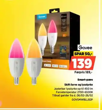 Justerbar lysstyrke op til 450 Im Farvetemperatur 2700-6500K Tilbud gælder fra d. 06/02-26/02 GOVSMWBLLB2P