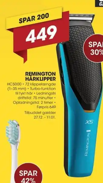 Prisen på Remington hårklipper kan findes øverst på siden sammen med datoerne, hvor tilbuddet er tilgængeligt. Du kan også kigge på prisen i den nuværende Punkt1 tilbudsavis eller på Punkt1s hjemmeside. Kampagnetilbud sikrer, at du køber Punkt1s varer til den laveste pris.