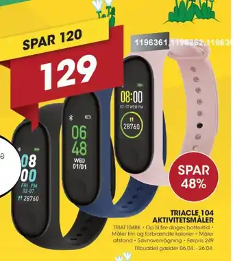 Nu på tilbud hos Punkt1: Triacle 104 aktivitetsmåler TRIAT104BK ✅ Gælder fra 6-04 til 26-04.