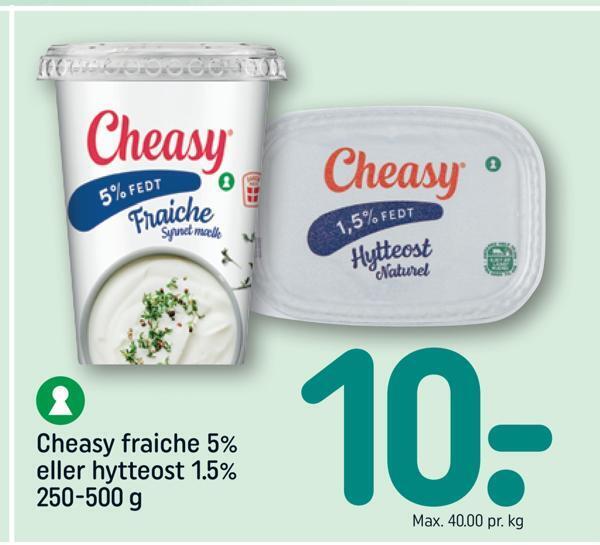 | Cheasy hytteost 1.5% fedt 250 g | REMA 1000 | 9,00 kr. | 02 januar 2025 | 11 januar 2025 | |||