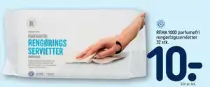 Nu på tilbud hos REMA 1000: REMA 1000 parfumefri rengøringsservietter 32 stk ✅ Gælder fra 11-01 til 17-01.