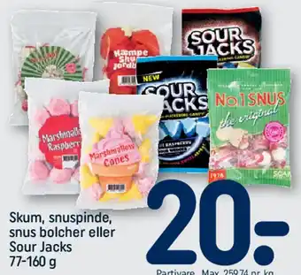 Skum, snuspinde, snus bolcher eller Sour Jacks tilbud og online kampagner direkte fra REMA 1000