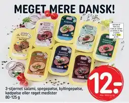 3-stjernet salami, spegepølse, kyllingepølse, kødpølse eller røget medister 80-125 g