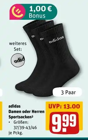 adidas Damen oder Herren Sportsocken³, EUR 9.99 rabat hos REWE DE