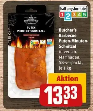 Nu på tilbud hos REWE DE: Butcher's Barbecue Puten-Minuten-Schnitzel, EUR 13.33 ✅ Gælder fra 13-04 til 19-04.