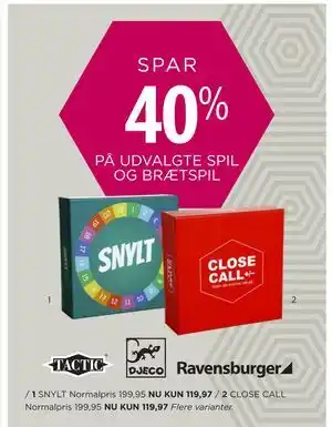 SPAR 40% PÅ UDVALGTE SPIL OG BRÆTSPIL 1 stk.
