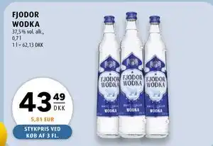 Prisen på FJODOR WODKA kan findes øverst på siden sammen med datoerne, hvor tilbuddet er tilgængeligt. Du kan også kigge på prisen i den nuværende Scandinavian Park tilbudsavis eller på Scandinavian Parks hjemmeside. Kampagnetilbud sikrer, at du køber Scandinavian Parks varer til den laveste pris.