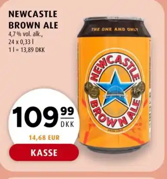 Prisen på Newcastle Brown ale kan findes øverst på siden sammen med datoerne, hvor tilbuddet er tilgængeligt. Du kan også kigge på prisen i den nuværende Scandinavian Park tilbudsavis eller på Scandinavian Parks hjemmeside. Kampagnetilbud sikrer, at du køber Scandinavian Parks varer til den laveste pris.
