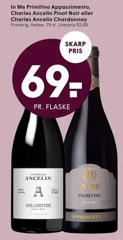 In Me Primitivo Appassimento, Charles Ancelin Pinot Noir eller Charles Ancelin Chardonnay